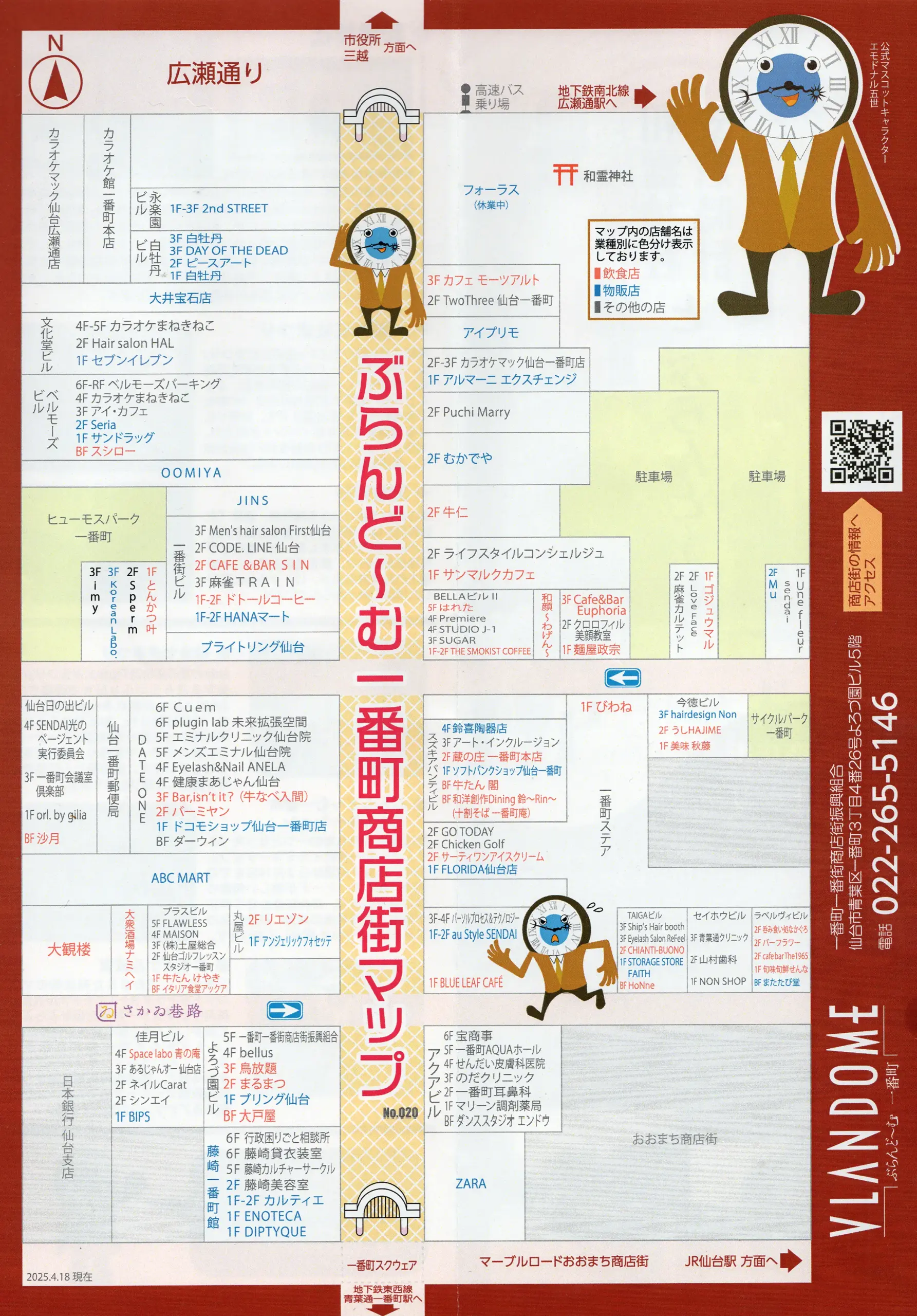 ぶらんど~む一番町商店街MAPは、商店街にある店舗や商店街組合事務所で配布しております。ぜひお手に取ってご確認ください。